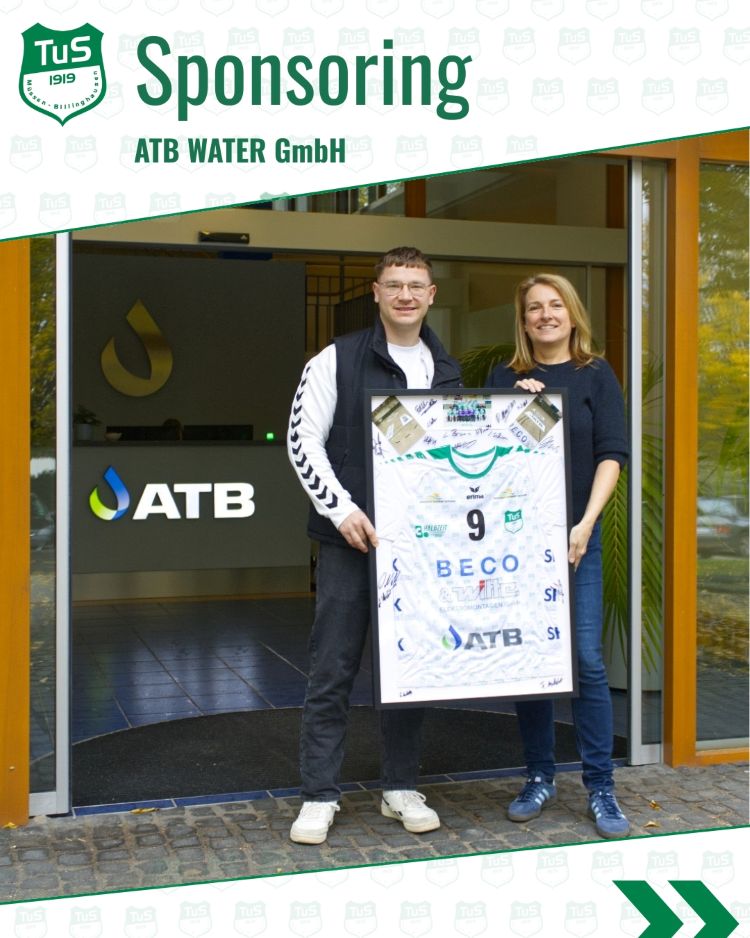 Wir freuen uns sehr, mit der "ATB WATER GmbH" aus Porta Westfalica einen neuen starken Partner an unserer Seite begrüßen zu dürfen. Seit dieser Saison 2025/2026 gehört das Unternehmen zu unserem Sponsorenkreis und zeigt seine Unterstützung nicht nur mit einem Bannerplatz in unserer Sporthalle, sondern ist auch auf der Vorderseite unserer neuen TuS-Trikots präsent.